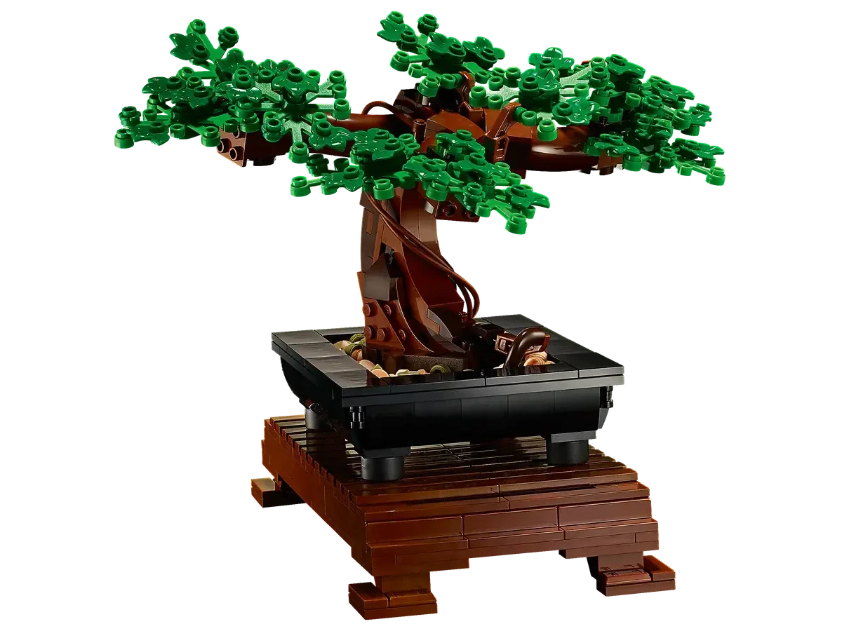 - Het LEGO® Bonsaiboompje maakt deel uit van de LEGO Botanische Collectie. Deze revolutionaire collectie bevat verschillende elementen die zijn gemaakt van plantaardig kunststof dat is vervaardigd uit duurzaam geteeld suikerriet.