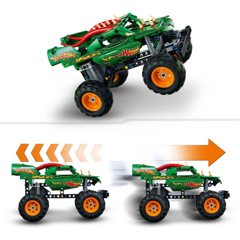 - Monstertruck – met deze LEGO® Technic Monster Jam™ Dragon™ (42149) speelgoedtruck kunnen kinderen bouwen en racen door middel van de pull-backmotor. Een 2-in-1 model voor urenlang speelplezier