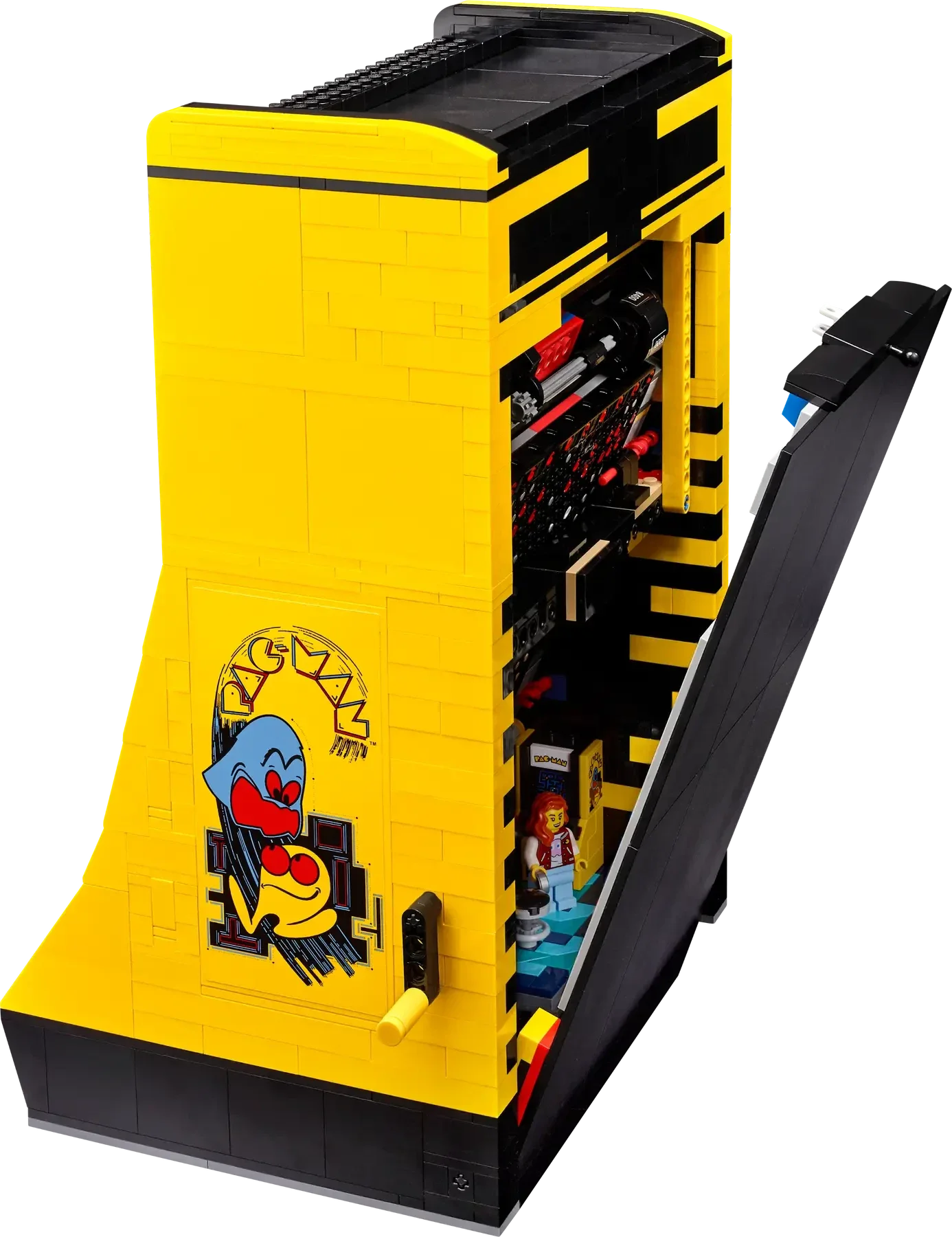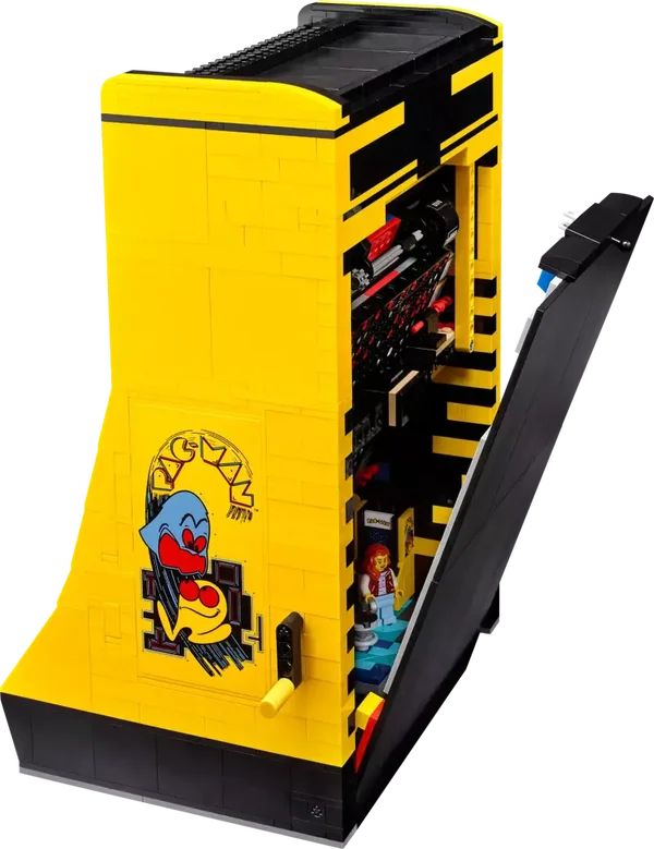 Deze LEGO replica zit vol retrodesign en leuke functies, waaronder een joystick die in 4 richtingen kan worden bewogen en een verlichte muntgleuf. Draai aan de hendel om een mechanisch doolhof te activeren dat de klassieke achtervolging tussen je favoriete personages simuleert of open het achterpaneel om het mechanisme te bekijken. Er is zelfs een scène uit de jaren 80 die je kunt bouwen, compleet met een minifiguur van een gamer en een displaydoos met draaibare figuren van PAC-MAN, BLINKY en CLYDE.